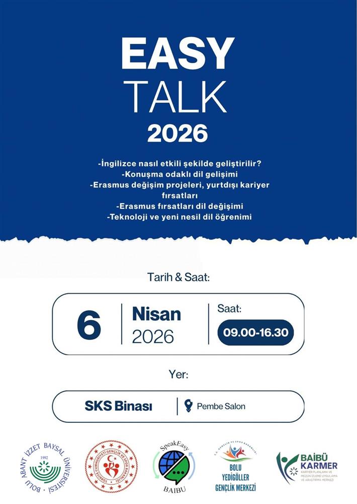 SpeakEasy topluluğu olarak, Bolu Abant İzzet Baysal Üniversitesi (BAİBÜ) kampüsünde dil öğrenimine dair büyük bir vizyon sunduğumuz EASY TALK 2026 zirvesini 6 Nisan’da başarıyla gerçekleştirdik. Gün boyu süren etkinliğimizde, alanında uzman isimler öğrencilerle bir araya gelerek ufuk açıcı sunumlar yaptılar.